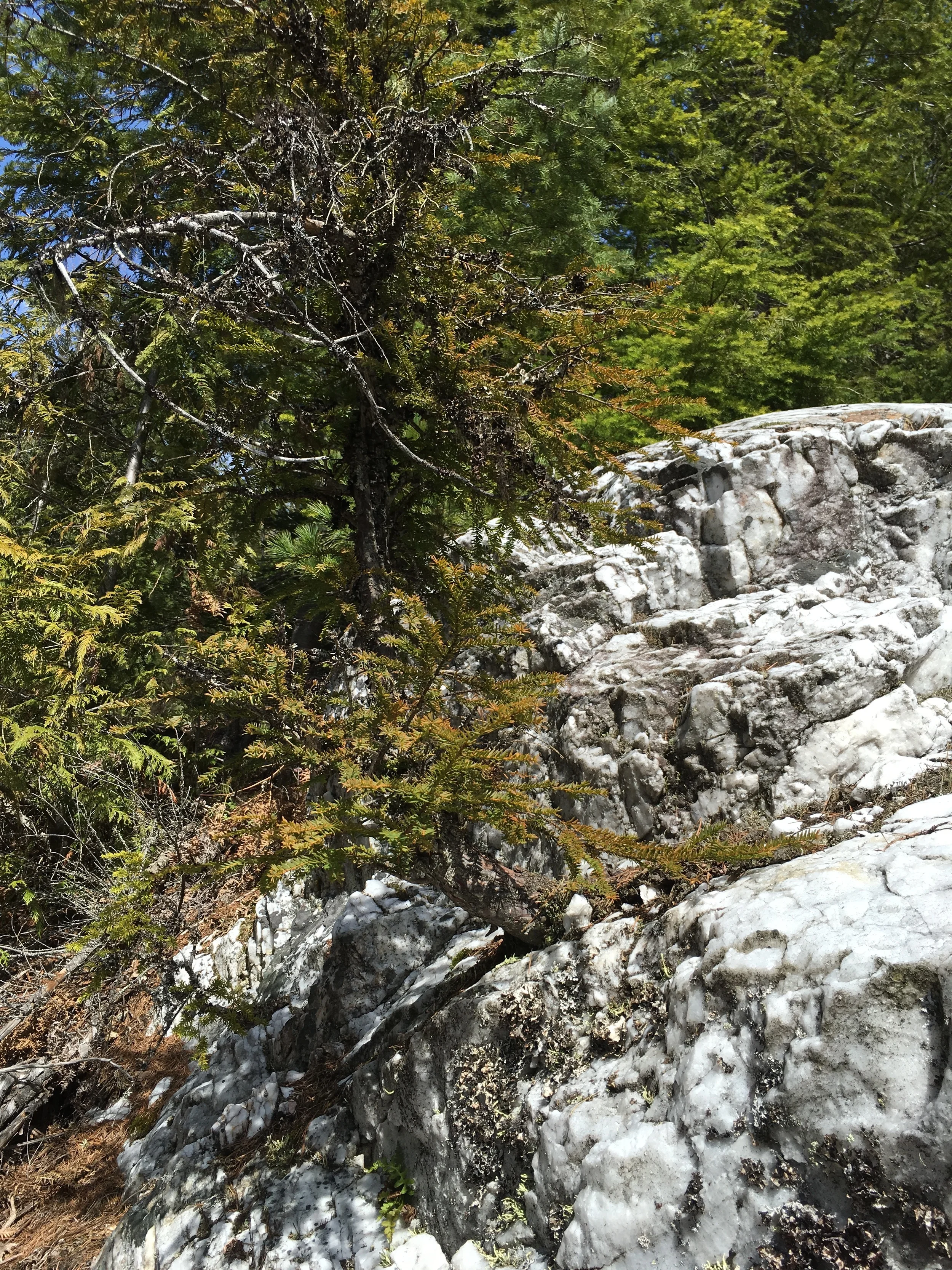 The Large Quartz Boulder with a Yew Tree growing from it.