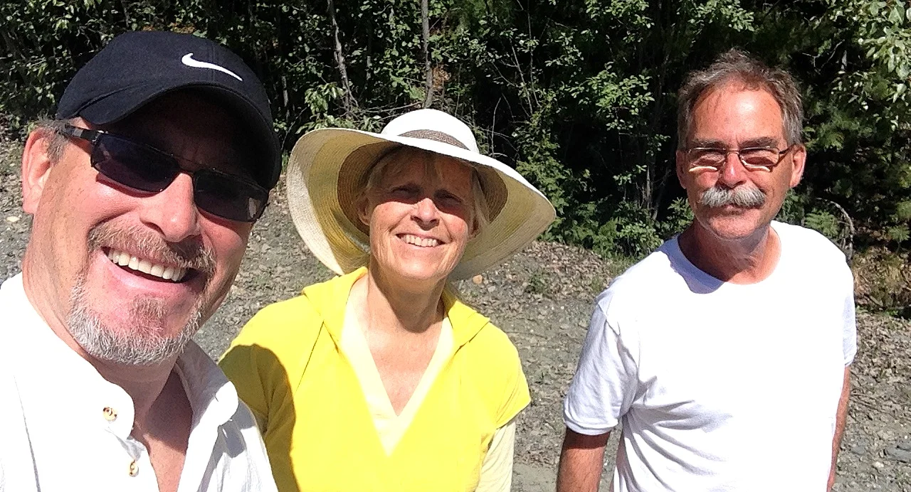 Janet, walking the property with Cameron Gordon, Resident (left), and Dennis Bruneau, Founder and President of Sun Lodge Farms (right).